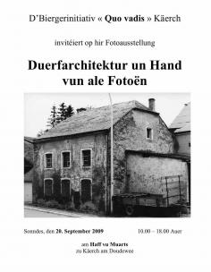 Fir seng Bibliothéik ze completéiere sicht d’Biergerinitiativ Quo vadis Käerch nach no Bicher a Brochuren vu Veräiner aus der Gemeng Käerch. Och d’Kollektioun vun eise Postkaarten a Fotoe soll erweidert ginn.